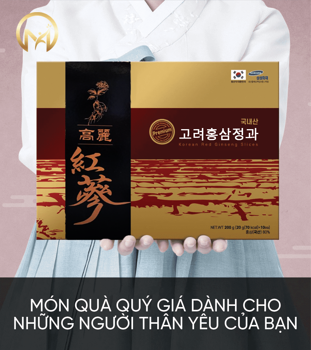 – Sản phẩm Hồng sâm nguyên củ tẩm mật ong Geumsan được chế biến từ củ nhân sâm tươi nguyên chất Hàn Quốc theo phương pháp hấp cách thủy, sau đó được tẩm với mật ong nguyên chất có tác dụng tăng cường thể lực, giảm lượng chất béo trong máu, giúp trẻ hóa làn da, tăng cường tuổi thọ, hỗ trợ điều tri táo bón.